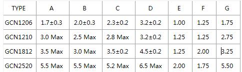 四、?貼片功率電感GCN封裝尺寸列表: